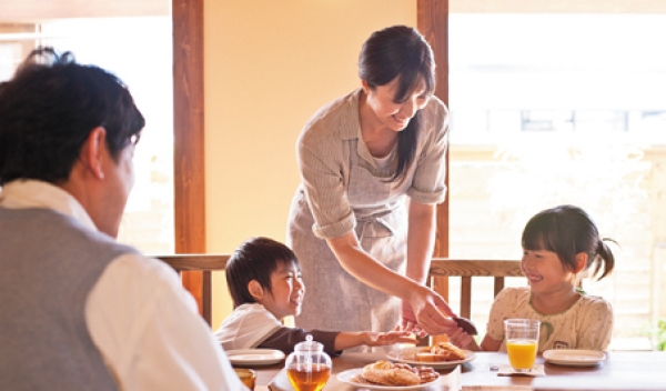 無垢材の魅力はなんといっても「美しさ」と「やすらぎ」です。まるで森の中に居るようなおだやかな空気で満ちた家には、自然と家族を笑顔にする力があります。